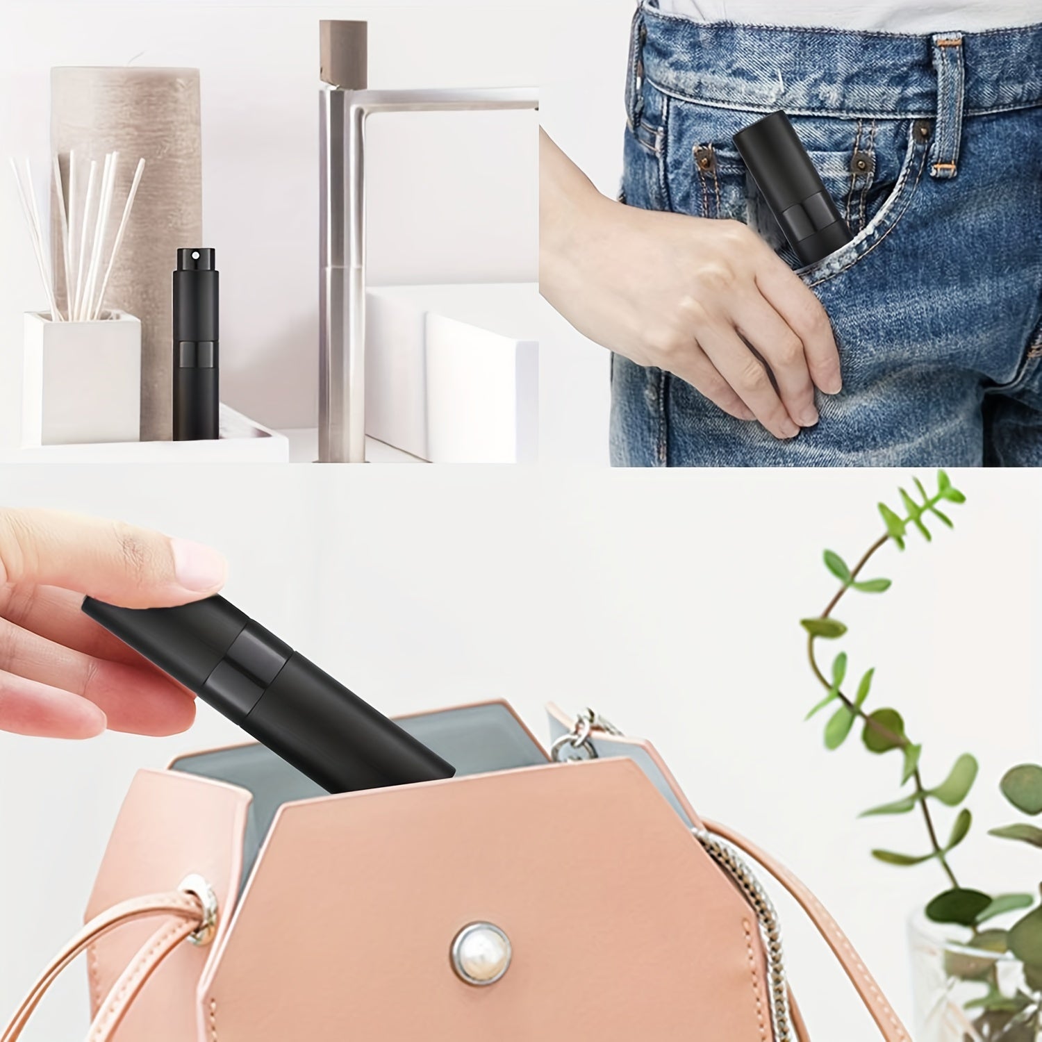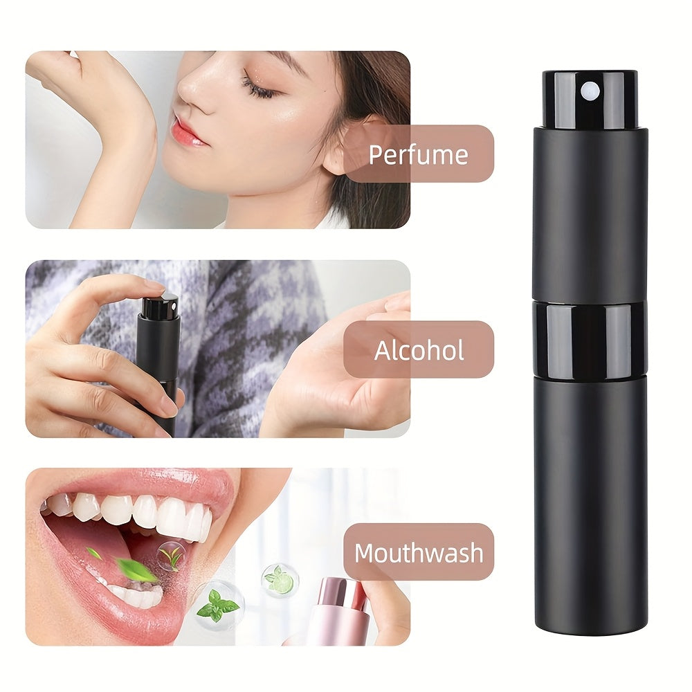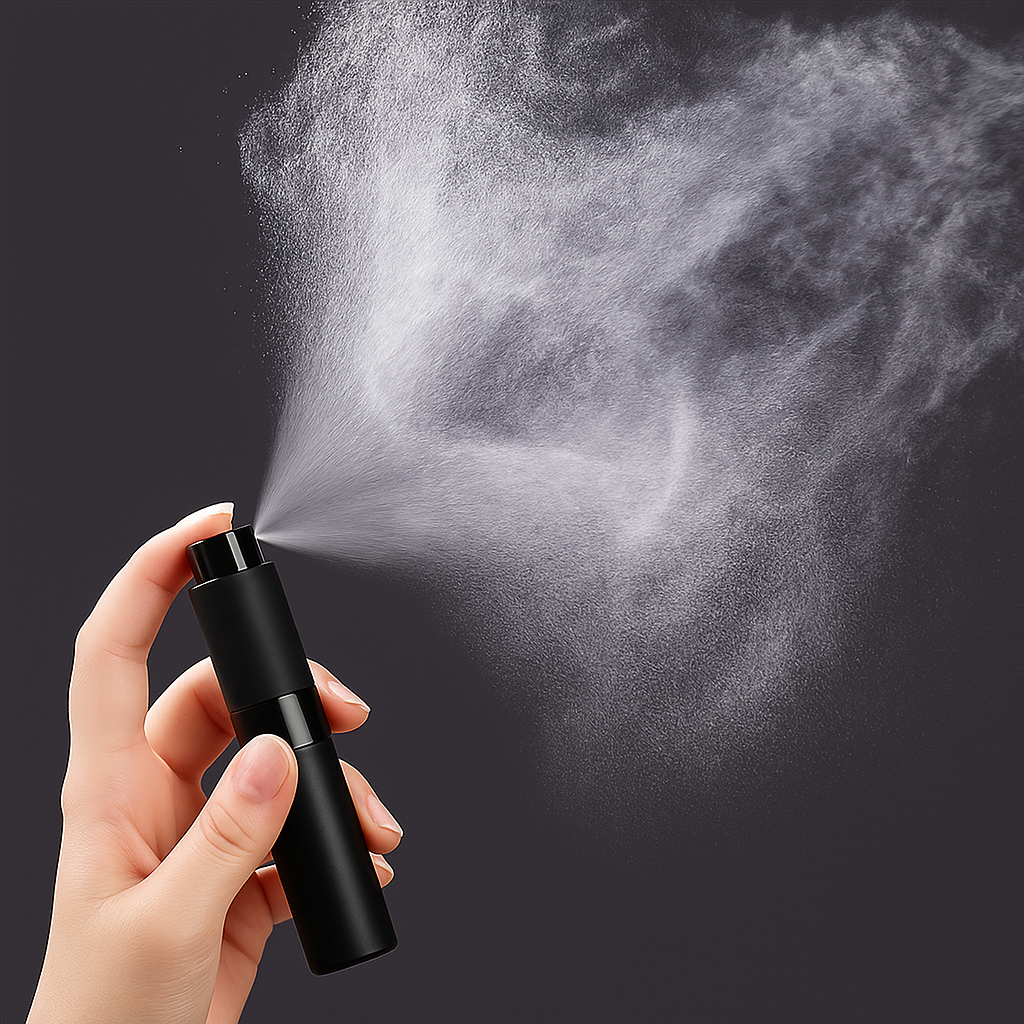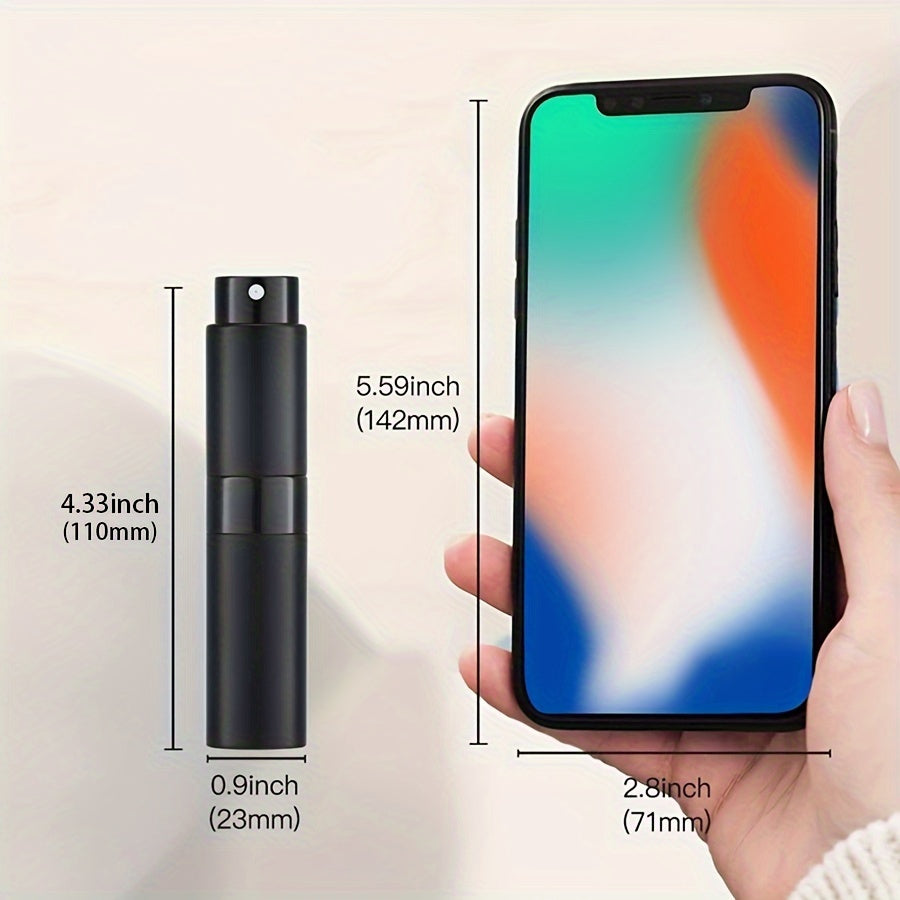 Pequeño, negro y listo para entrar en acción. Este atomizador portátil es ese accesorio discreto pero esencial que dice: "Sí, huelo bien, y lo sé." Perfecto para llevar tu perfume (o alcohol, no juzgamos) a donde sea que vayas, sin cargar con el frasco gigante que parece sacado de una telenovela.