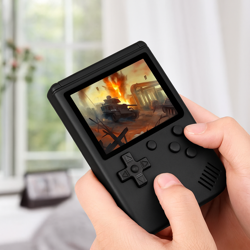 Diseñada para los amantes del gaming nostálgico y el diseño limpio, esta consola viene equipada con 400 juegos tipo FC, una pantalla a color de alta resolución, y batería recargable para que juegues sin interrupciones.