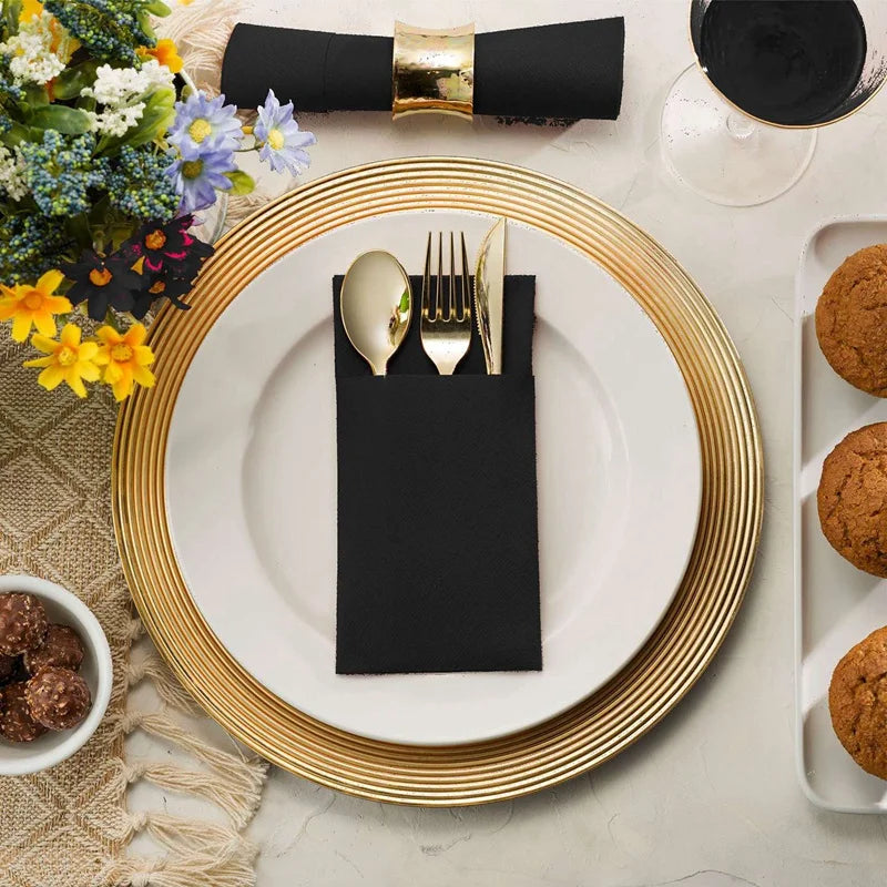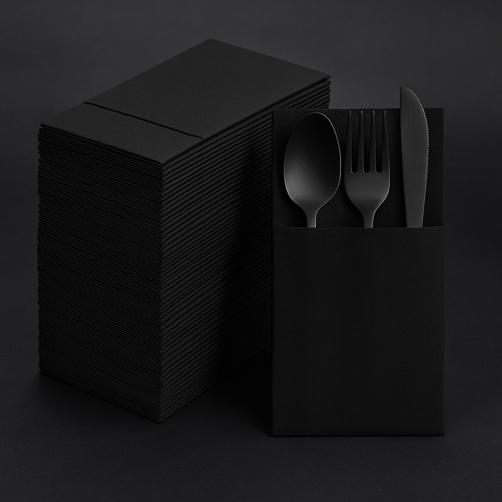 ¿Deseas un toque elegante sin el drama del lavado? Estas servilletas desechables negras con bolsillo para cubiertos son todo lo que tu mesa necesita para decir: “Aquí se cena con clase... pero no se lava nada después”.